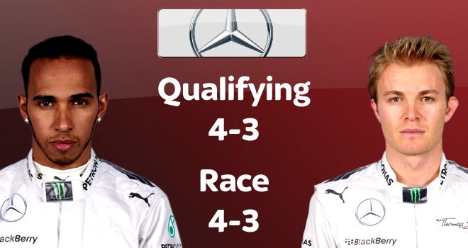 В паре борцов за чемпионство пока в обоих зачетах впереди Льюис. К сожалению для него, на положение в чемпионате это прямо не влияет. Замечу, что серьезно поправил свои дела Нико именно в последних двух гонках, иначе счет был бы действительно зубодробительным. В любом случае, очевидно, что борьба в этой паре в случае надежности болидов будет идти до последней гонки.