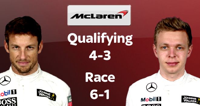 После прошлогоднего фарса команда из Уокинга решилась на радикальный шаг, пригласив новичка, Кевина Магнуссена. Согласимся, поначалу казалось, что этот шаг себя полностью оправдал: Кевин опередил своего опытного соперника и в квалификации, и в гонке. Но, если быть честным, Дженсону в Австралии помешали желтые флаги в конце квалификации, поэтому и здесь исход мог быть иным. В дальнейшем Баттон полностью показал свой класс, поборов датчанина во всех гонках и почти всех квалификациях. Плюс ко всему, МакЛарен серьезно страдает из-за того, что не получает от Магнуссена достаточного количества информации по поводу "доводки" машины. Сколько времени потребуется Кевину на адаптацию-неизвестно. Хотя, давайте не будем забывать о том, что этот сезон является последним сезоном сотрудничества "серебряных стрел" и "Мерседеса", поэтому и спрос с Магнуссена не столь высок, как может показаться.