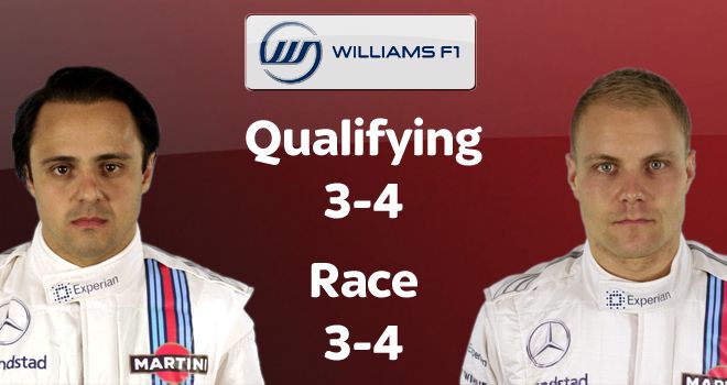 А вот с кого спросить стоит-так это с пилотов "Уильямса". В Гроуве построили отличную машину, которая по скорости порой не уступает "Ред Буллам", и уж точно опережает "Феррари", "МакЛарен" и, возможно, "Форс-Индию". Шестое место в чемпионате по итогам первых семи гонок должно считаться разочаровывающим результатом. Ошибки механиков, постоянные просчеты в стратегии, а также безалаберность гонщиков накладывают свой отпечаток. По данным цифрам мы получаем еще одно подтверждение того факта, что Масса и Боттас ведут равную борьбу друг с другом, однако порой они слишком увлекаются ею, упуская при этом важный момент: "Уильямс" хочет восстановить свои позиции, и для них важна максимизация результата. Тот факт, что гонщики это понимают не всегда, действительно огорчает.