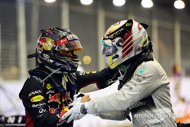 Хэмилтон на сверхмягких шинах в квалификационном темпе смог проехать 26 кругов, чтобы сделать отрыв и пойти на третий пит-стоп. В начале его темп был фантастическим, но затем шины испортились и Феттель, который провел лучшую гонку в этом году, смог на мгновение стать лидером. Хэмилтон на новых шинах был уверен, что вернет лидерство, но британец был ошеломлен, когда Феттель пропустил его.