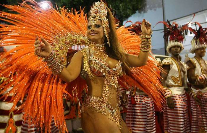 В 1963 году танцоры чемпионской школы самбы Salgueiro поразили публику роскошными нарядами. С тех пор костюмы — отдельная статья расходов каждой школы. Расшитые блестками, бисером, пайетками, ракушками и стразами, с огромным количеством фазаньих и страусиных перьев, наряды могут весить до 10 килограммов. Некоторые особо роскошные костюмы могут достигать пяти метров в высоту, а в ширину — и того больше. ©