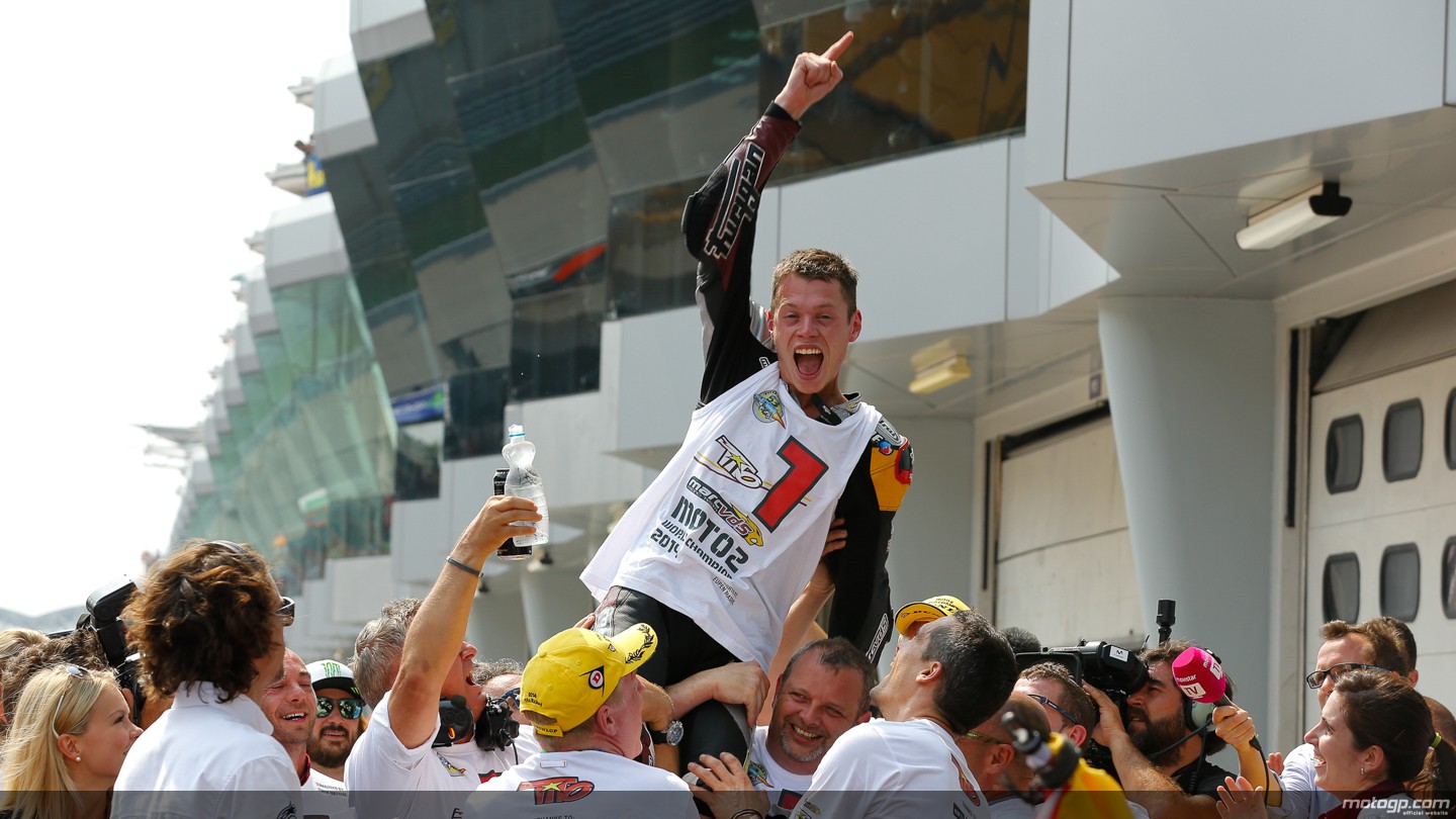 В Мото2 чемпионат был в принципе довольно скучным, потому что единственным настоящим конкурентом Тито Рабата, да и то не до конца сезона, был его напарник по команде нестареющий Мика Каллио. В целом Рабат контролировал ситуацию спокойно, и на предпоследнем этапе он досрочно стал чемпионом.