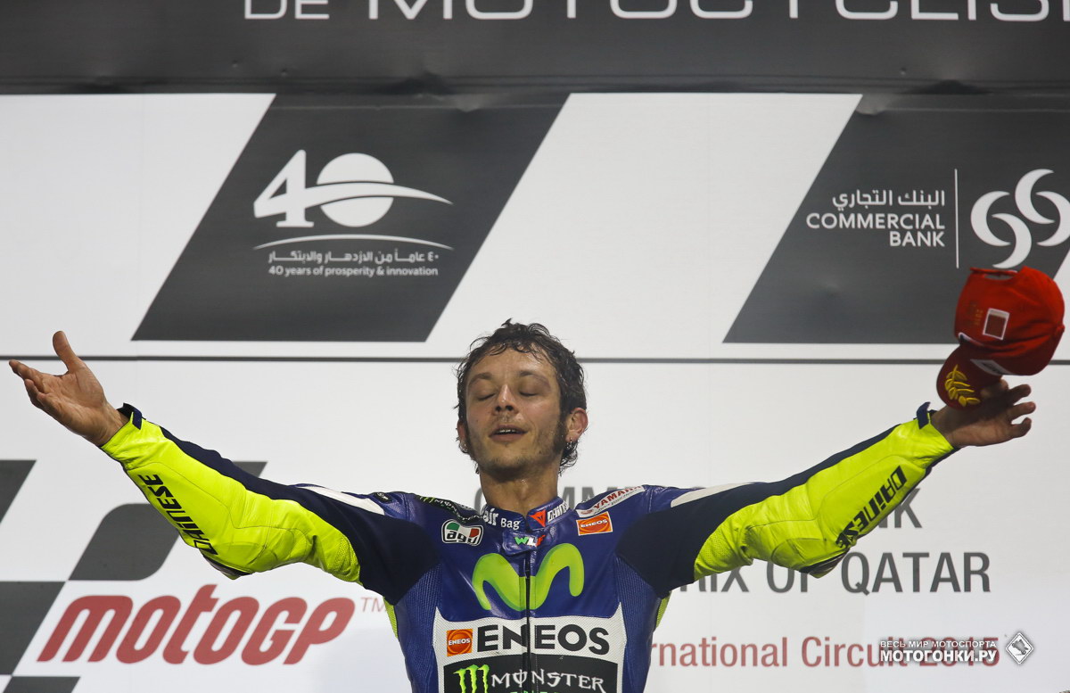 Валентино Росси выигрывает Гран-При Катара с 8-й позиции, прорвавшись сквозь стройные ряды Ducati и устроив реальную перестрелку с Андреа Довициозо перед финишем.
