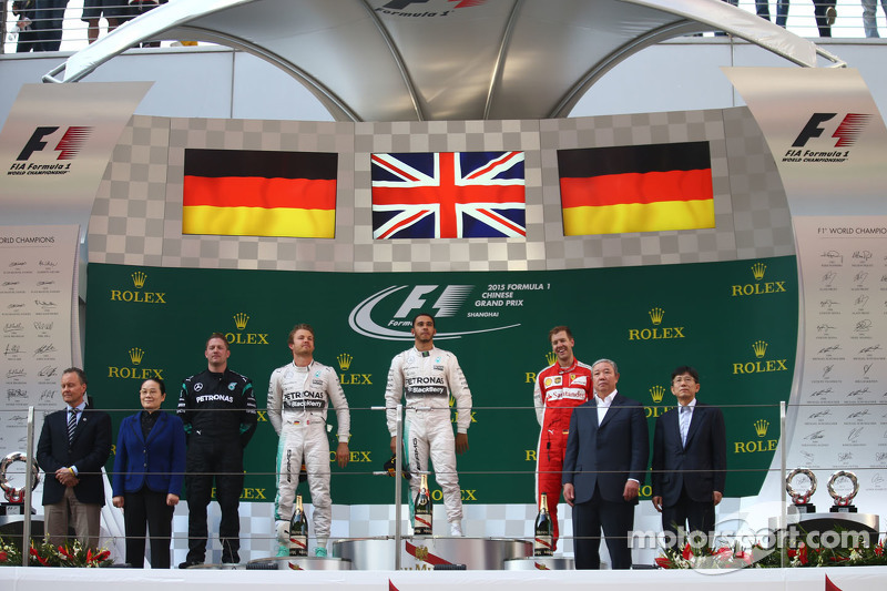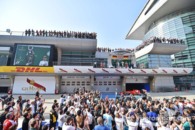 «Я счастлив», говорит Хэмилтон. «Уик-энд без проблем и великолепная гонка – команда отлично справилась. Мы знали, что борьба с Ferrari будет напряженной, поскольку они эффективно работают с резиной на длинной дистанции, но я держал ситуацию под контролем и следил за резиной, стараясь максимально продлить ресурс каждого комплекта более мягких шин. Со стороны Нико никаких реальных угроз по ходу гонки не было, но я не делал ничего специального, чтобы замедлить его. Перед вторым пит-стопом я смог проехать несколько кругов в отличном темпе, что позволило создать отрыв, а потом контролировал состояние более жестких шин до финиша. Я благодарен команде за то, что уик-энд прошел гладко. Поведение машины соответствовало моим ожиданиям, и я рад вновь победить в Китае на глазах этих удивительных болельщиков – их невероятная поддержка очень помогала мне по ходу всего уик-энда».