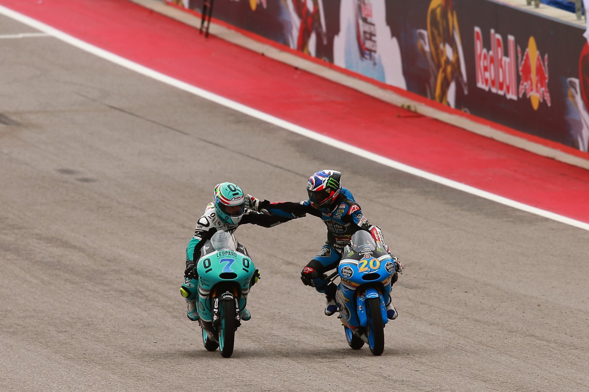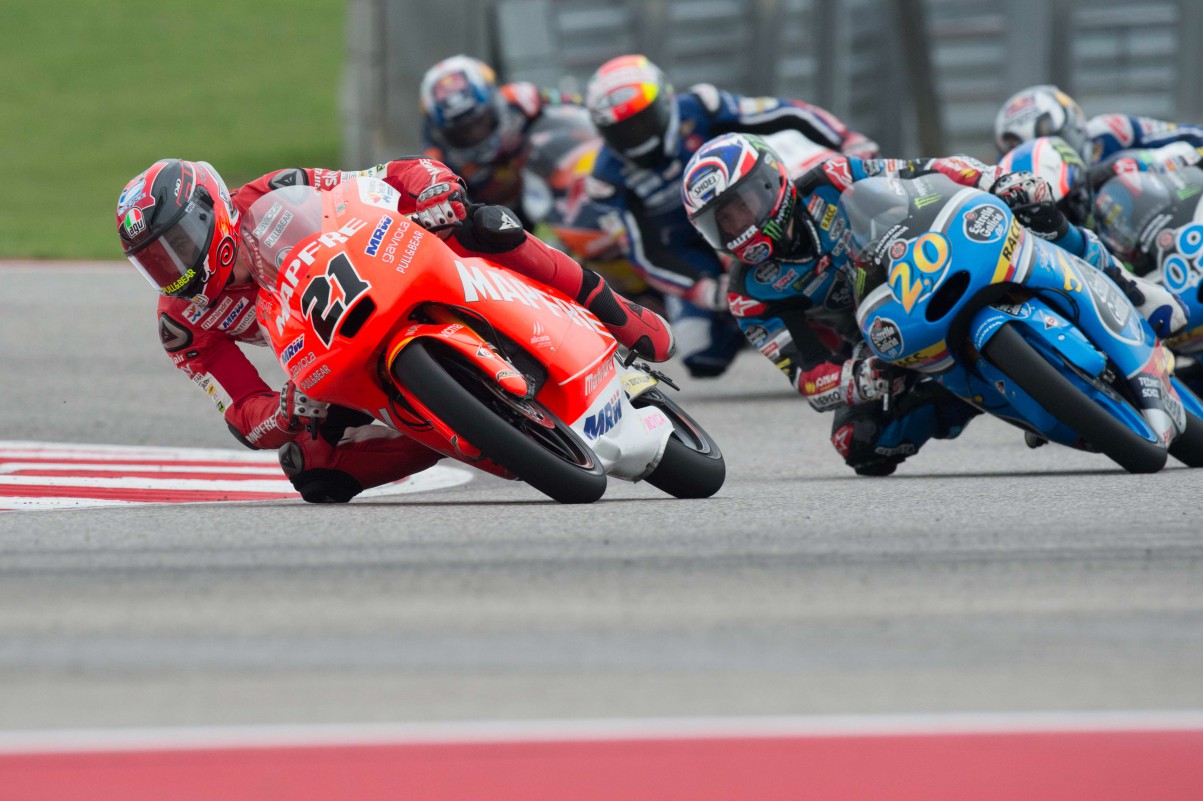 Вскоре Антонелли вырвался на второе место и от избытка чувств грохнулся наземь перед шпилькой, которая выводит на самую длинную прямую трассы в Остине. Мотоцикл Николо покатился вперёд, сам гонщик быстро вскочив на ноги побежал его догонять. В это время сзади упал Хироки Оно, который к тому времени подбирался к 10-му месту, попутно установив лучшее время круга в гонке. Мотоцикл Оно понёсся по трассе в направлении Антонелли и чуть не сбил того с ног. К счастью, всё обошлось. Антонелли в итоге даже смог продолжить гонку, но финишировал он только 23-м, позади Аны Карраско.