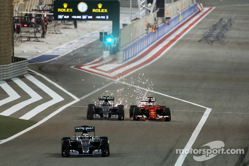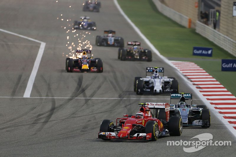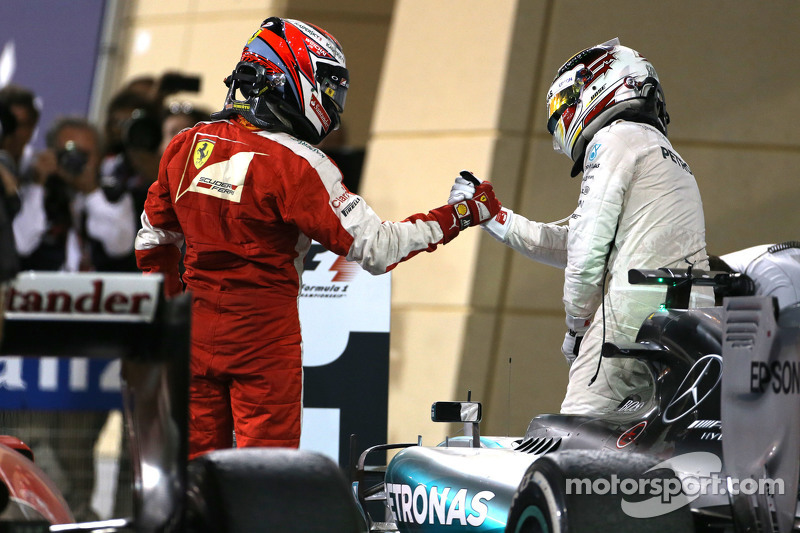 Хэмилтон стал уязвим для Райкконена, но финн в итоге уступил 3.3с британцу, который одержал вторую победу на Сахире.