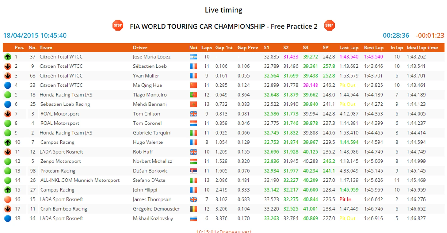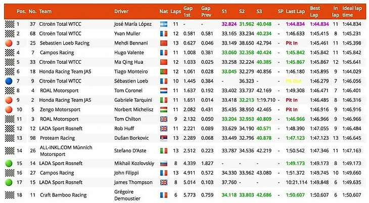 Многочисленные сходы и штрафы позвролили Лопесу прорваться на третье место, а Томпсону занять седьмое - пока высшее для Лады в этом сезоне. Впрочем, по сообщениям команды, результаты могли быть лучше, но всем гонщикам приходилось бороться не только с соперниками, но и с отказывающими гидроусилителями рулевого управления.