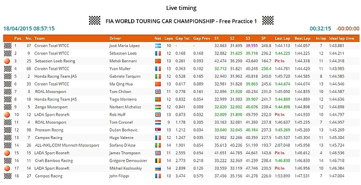 Первая гонка прошла довольно скучно: разве что Том Чилтон выбил своего напарника Коронеля, за что получил штраф в 30 секунд, Лопес дежурно выиграл, Мюллер прорвался на пятое место, а Роб Хафф принёс Ладе первые гоночные очки: