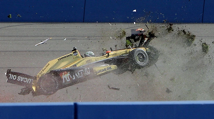 Видео. Болиды «Индикара» продолжают взлетать на трассе в Индианаполисе