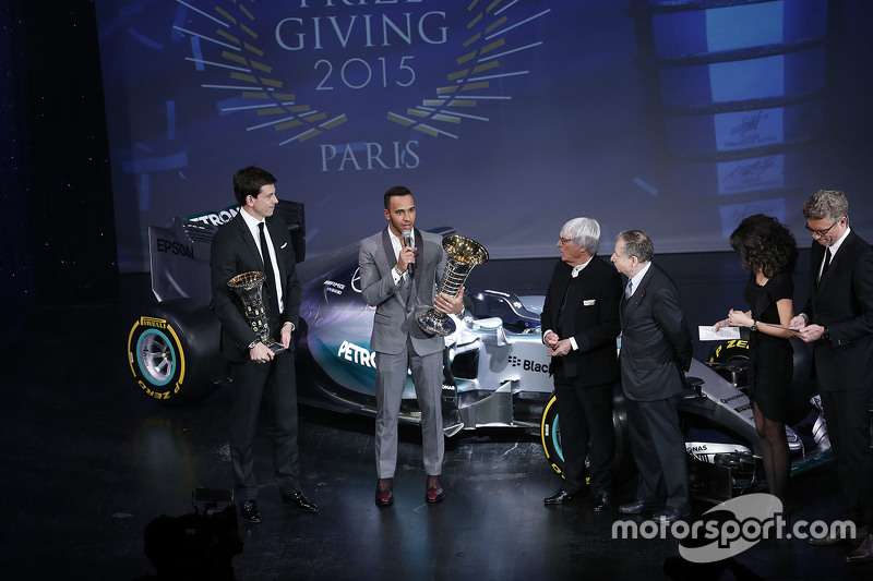 Ежегодная церемония награждения прошла в пятницу в Париже в «Лидо де Пари». На этой церемонии Хэмилтону был вручен знаковый трофей. Теперь по количеству титулов Льюис сравнялся с такими пилотами, как Джек Брэбэм, Джеки Стюарт, Ники Лауда, Нельсон Пике и Айртон Сенна.