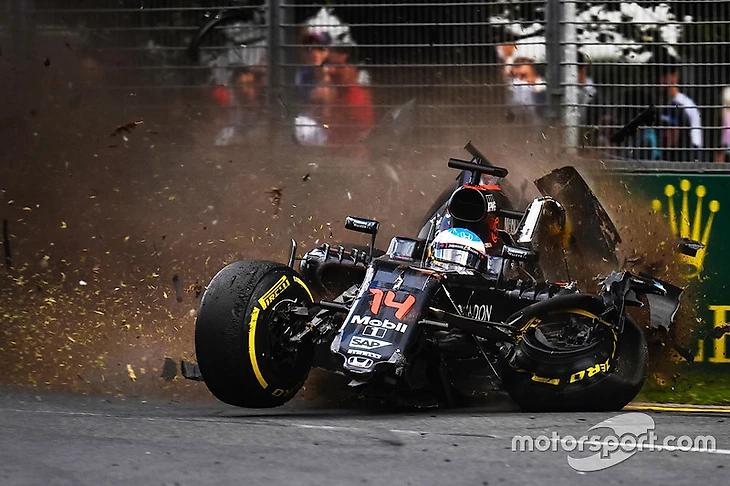 Тем временем, на 19-м круге столкнулись Алонсо и Эстебан Гутьеррес в 3 повороте. Обоим удалось избежать травм в такой ужасной аварии. На трассе был показан красный флаг.
