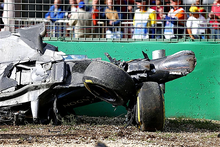 Важно отметить, что в момент аварии не оторвались колеса (более того, и после окончательной остановки машины некоторые из них остались закрепленными) – это результат многолетних усилий ФИА по повышению безопасности, – в противном случае колеса могли в кого-нибудь попасть.
