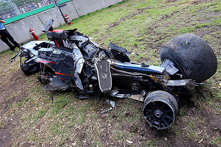Внешний вид останков «Макларена» может вызвать ужас, но на самом деле главные защитные элементы шасси остались целы:
