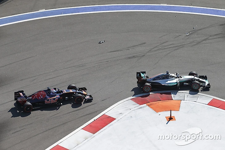 У Феттеля произошел прокол колеса. Тем не менее, в третьем повороте Квят просто выбил немца с трассы. За это россиянина наказали десятисекундным штрафом стоп-энд-гоу и тремя штрафными баллами.