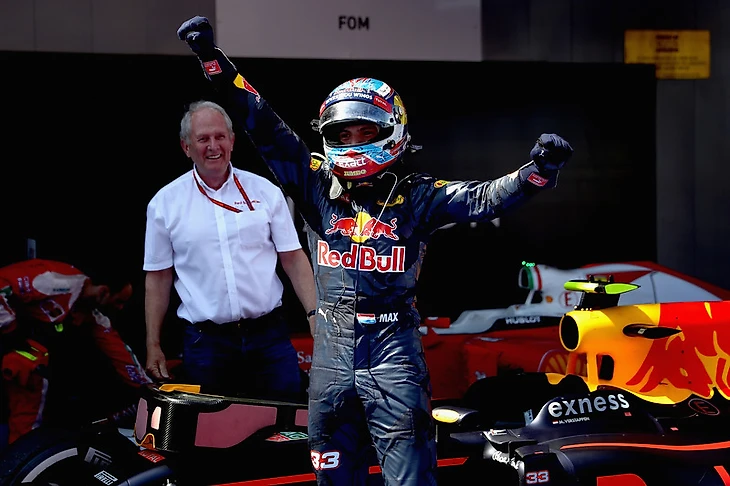 Поэтому дебютант «Ред Булл» старался беречь шины, ожидая следующего захода Райкконена, и демонстрировал при этом завидное спокойствие и зрелость, которым, казалось бы, в 18 лет просто неоткуда взяться. Потом Макс сказал, что примерно за 5 кругов до финиша он понял, что может выиграть гонку, поскольку у Кими подходил к концу ресурс шин и идей, и натиск «Феррари» несколько ослабел.