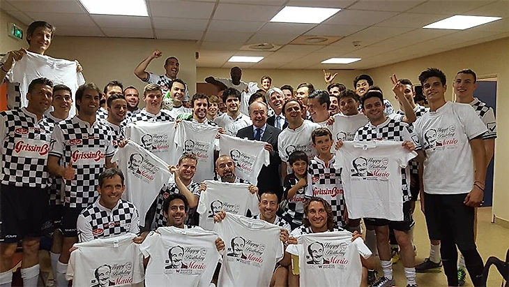 Деньги, вырученные за этот матч, были перечислены детям из неблагополучных семей. А еще пилоты поздравили с днем рождения Марио ди Натале, главу футбольного клуба автогонщиков.