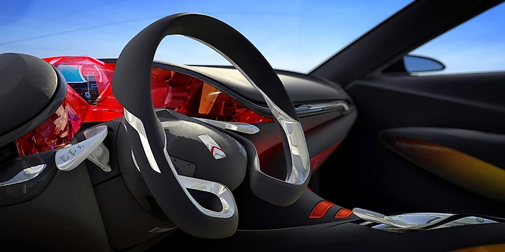 Система управления похожа не истребитель: чтобы дать пяточку, нужно переместить джойстик вперед; чтобы повернуть – направить его в бок; чтобы остановить – потянуть назад. Водить машину сможет и комсомолка, сидящая на переднем пассажирском кресле.