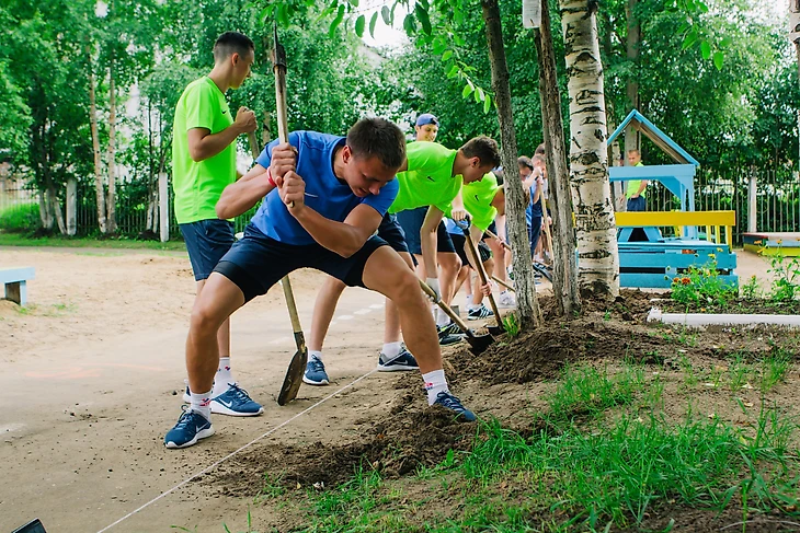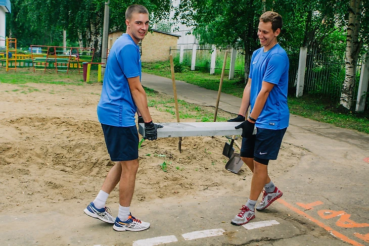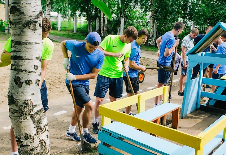 Но текст, правда, не о том, что нас ждет осенью-зимой, а о вполне приятной и интересной акции. В Республике Коми, которую и представляет «Строитель», идет Год добрых дел, объявленный главой региона Сергеем Гапликовым. Клуб вышел с проектом «70 добрых дел» (увязочка и к году, и к 70-летию команды), в рамках которого запланировано огромное количество мероприятий. Одно из них – посещение детского сада №88. Садику была нужна помощь в установке бордюров – было необходимо выкопать траншею для них, а мужчин всего два человека в учреждении.