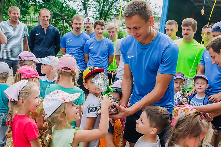 По окончании работы игроки «Строителя» пообщались с малышами и вручили им сладкие подарки.