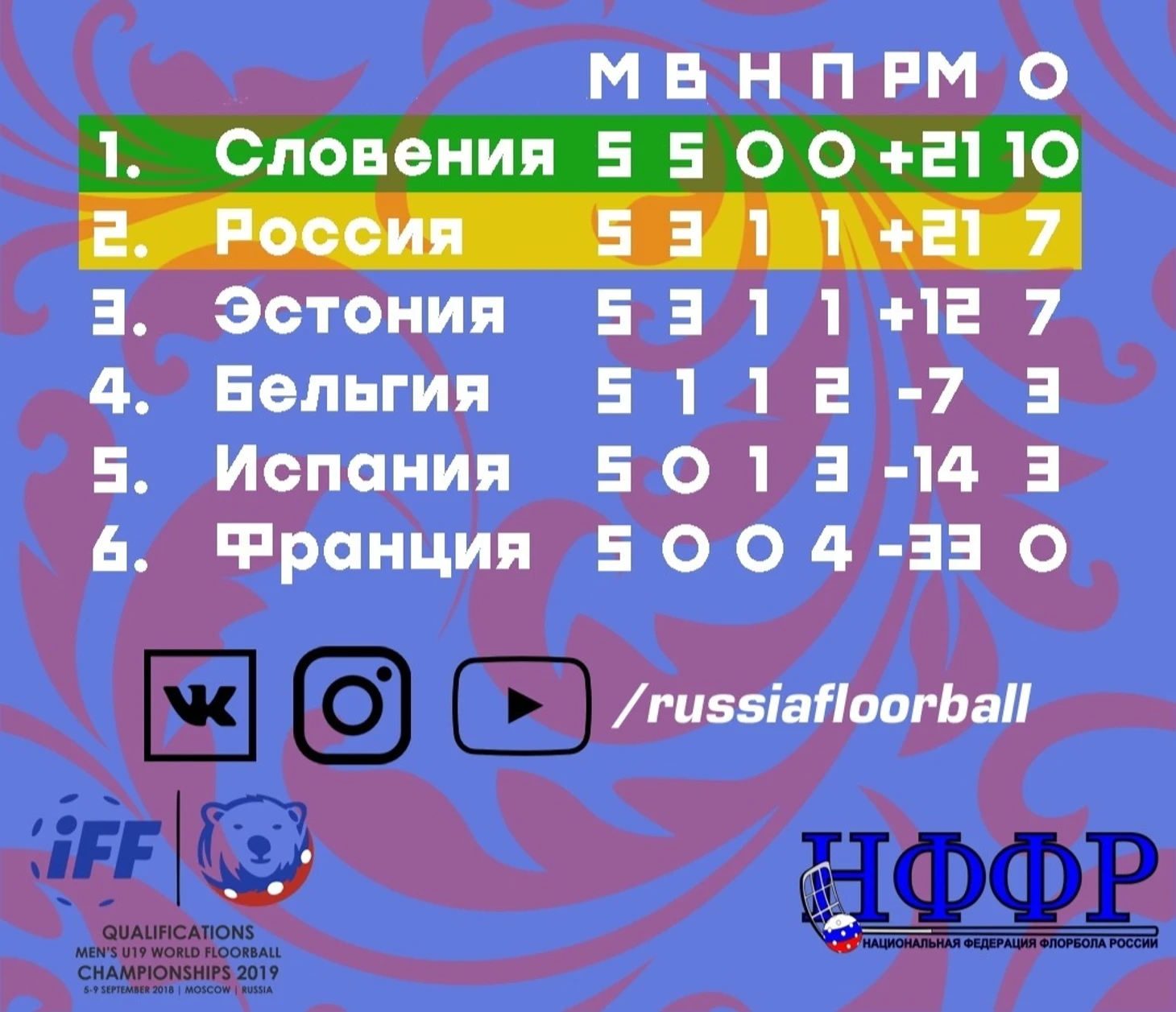 Юниорская Сборная России до 19 лет прошла на Чемпионат мира 2019 по флорболу