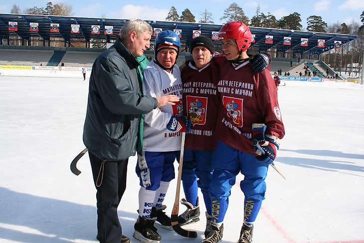 6 марта 2006. Красногорск, стадион «Зоркий». Маслов и ветераны «Зоркого». На фото слева направо: Юрий Петров, Валерий Маслов, Сергей Майборода, Александр Шишкин