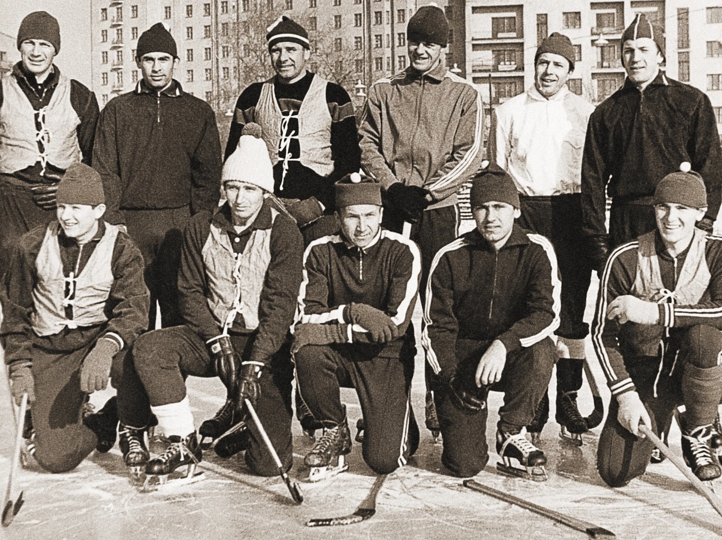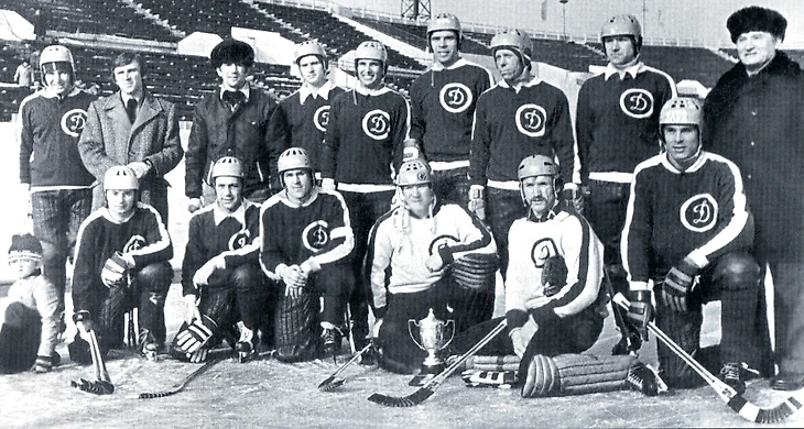 Партнеры по футбольному московскому «Динамо», в том числе и великий вратарь Лев Яшин, частенько играли и в хоккей с мячом, но исключительно на тренировках. На фото (слева направо) сделанном в феврале 1968 года на Малом стадионе «Динамо" (слева направо): сидят — Владимир Дудко, Валерий Маслов, Геннадий Еврюжихин, Юрий Авруцкий, Владимир Ларин; стоят — Валерий Балясников, Виктор Аничкин, Лев Яшин, Георгий Рябов, Геннадий Гусаров и Виктор Царев