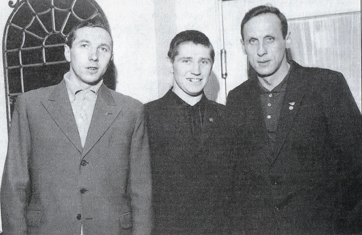 14 января 1972. Ульяновск. Международный турнир на призы газеты «Советская Россия». Тренер сборной СССР Анатолий Георгиевич Мельников и капитан сборной СССР Валерий Маслов