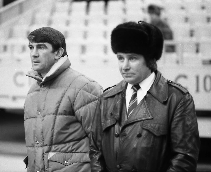 1984. Главный тренер сборной СССР Вячеслав Евгеньевич Соловьев (слева) и Леонид Лобачев