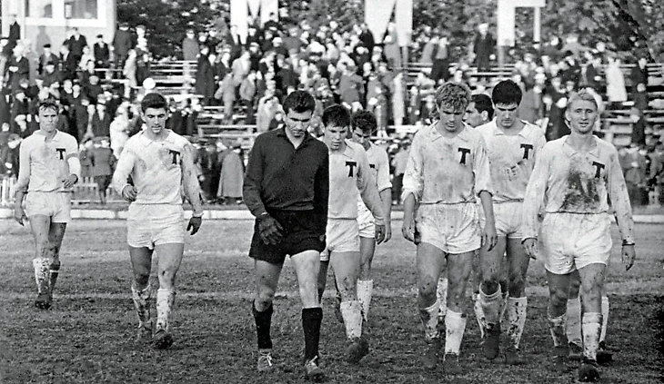 6 июля 1964. Ярославль. После матча XXVI чемпионата СССР (Высшая лига) «Шинник» (Ярославль) — «Торпедо» (Москва) — 1:4. На фото — московские торпедовцы (слева направо) Валентин Иванов, Вячеслав Соловьев, Эдуард Шаповаленко, Олег Сергеев, Владимир Сараев, Владимир Мещеряков, Вячеслав Марушко, Валерий Воронин, Вячеслав Андреюк