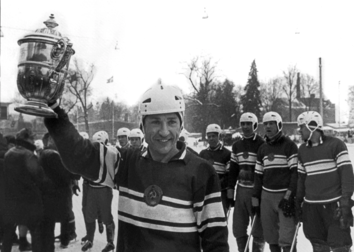 16 февраля 1969. Упсала (Швеция). Капитан сборной СССР Виктор Шеховцов с кубком сильнейшей команды планеты после окончания заключительного матча VI чемпионата мира Швеция — СССР — 1:2