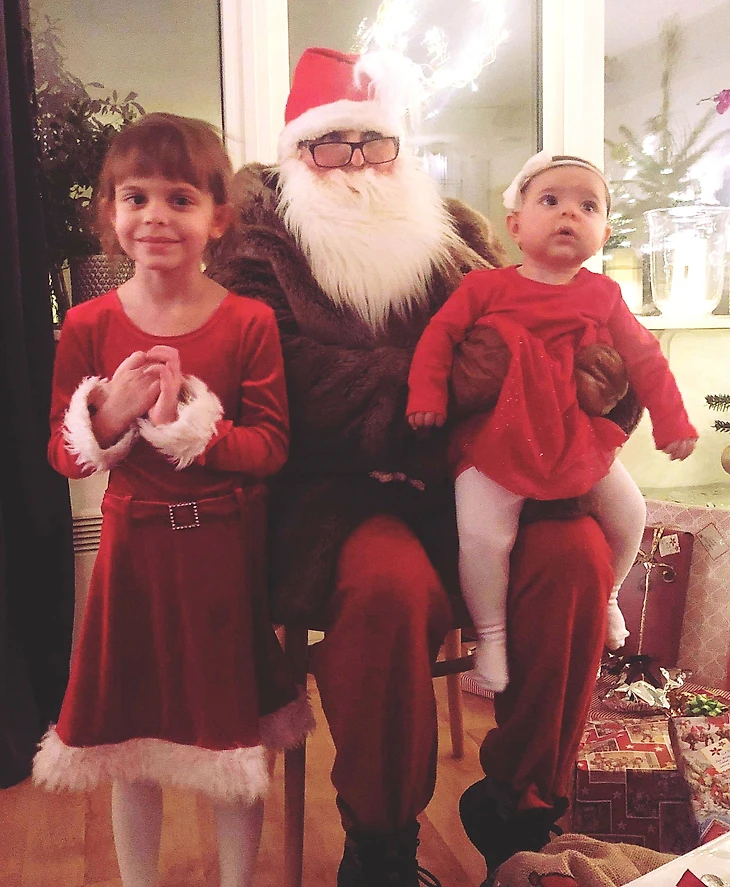 Виктор Шакалин в роли Деда Мороза с двумя внучками. Фото 31 декабря 2018 года