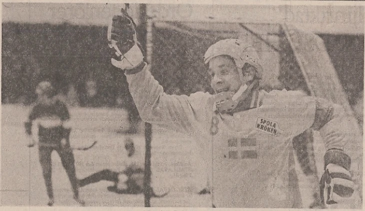 30 января 1977. Драммен (Норвегия). Матч второго круга X чемпионата мира СССР — Швеция — 3:2. Только что шведский форвард «Бемпа» Эрикссон забил свой 107-й и последний мяч за сборную Швеции