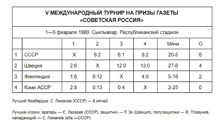 На турнире на призы «Советской России» в Сыктывкаре сборная СССР буквально крушила всех соперников — безоговорочное первое место