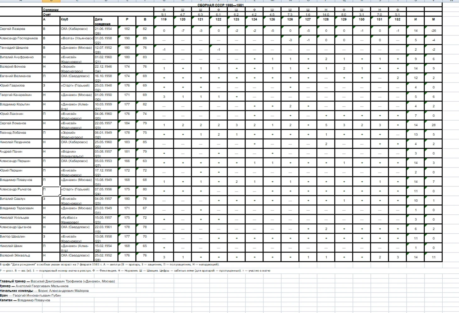 В 1980 году красноярский «Енисей» впервые стал чемпионом страны, а его представительство в сборной увеличилось до шести игроков