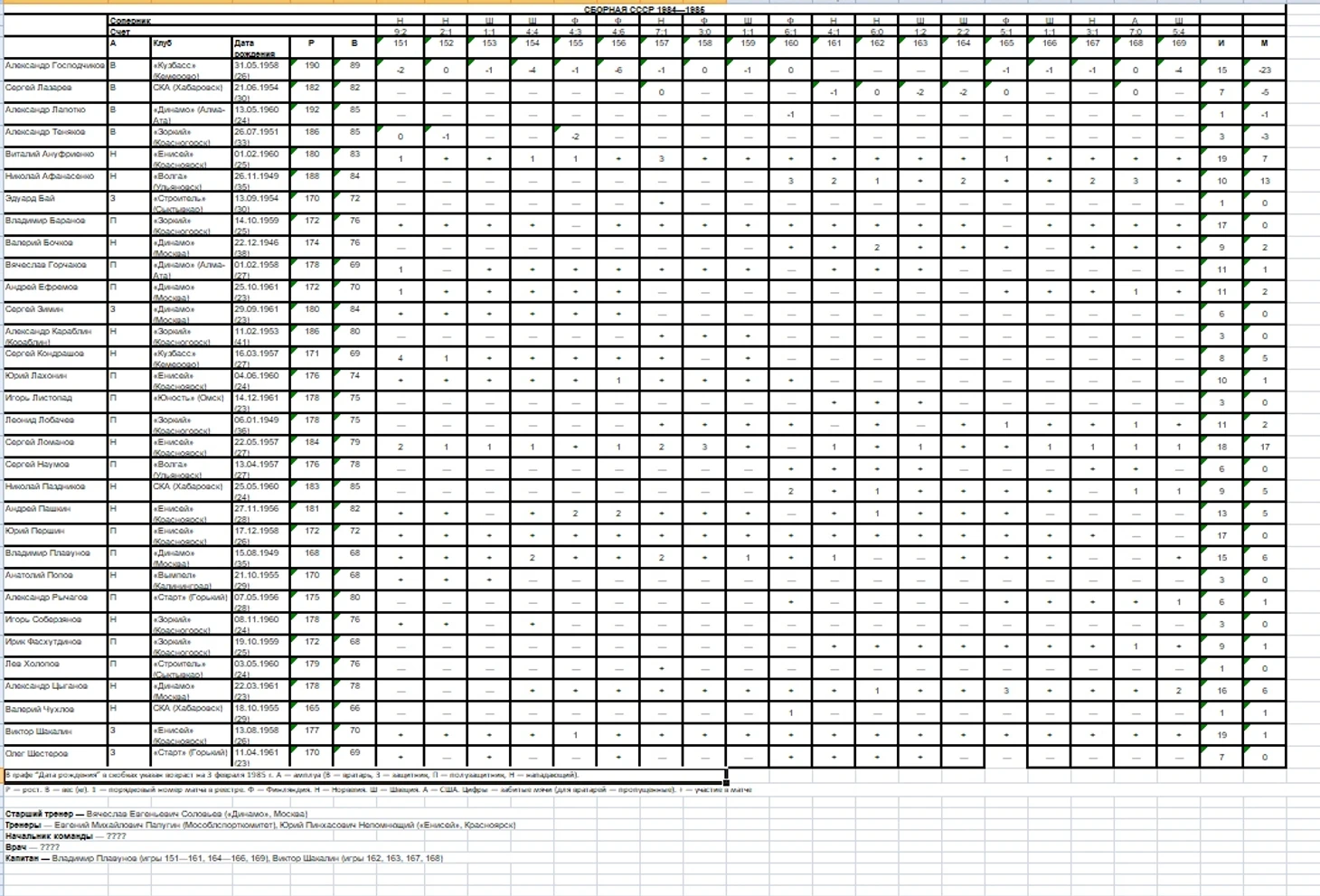 32 игрока пришлось привлечь главному тренеру сборной Вячеславу Евгеньевичу Соловьеву, чтобы найти оптимальный состав сборной команды СССР