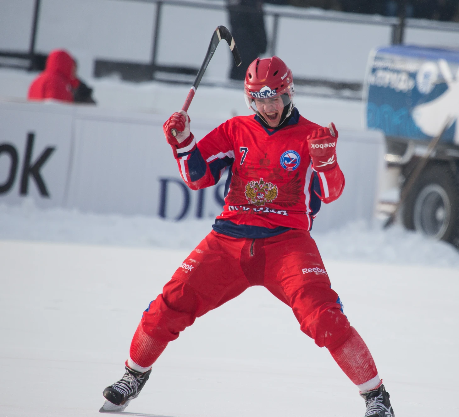 2 февраля 2014. Иркутск, стадион «Труд». Финальный матч XXXIV чемпионата мира Россия — Швеция — 3:2. Сергей Ломанов делает счет 2:1 на 40-й минуте матча