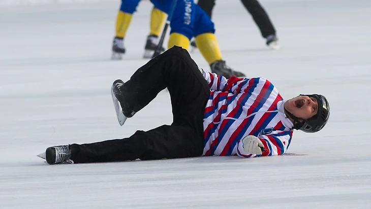 2 февраля 2014. Иркутск, стадион «Труд». Финальный матч XXXIV чемпионата мира Россия — Швеция — 3:2. На 50-й минуте травму получает главный судья матча финн Юха-Матти Канниайнен