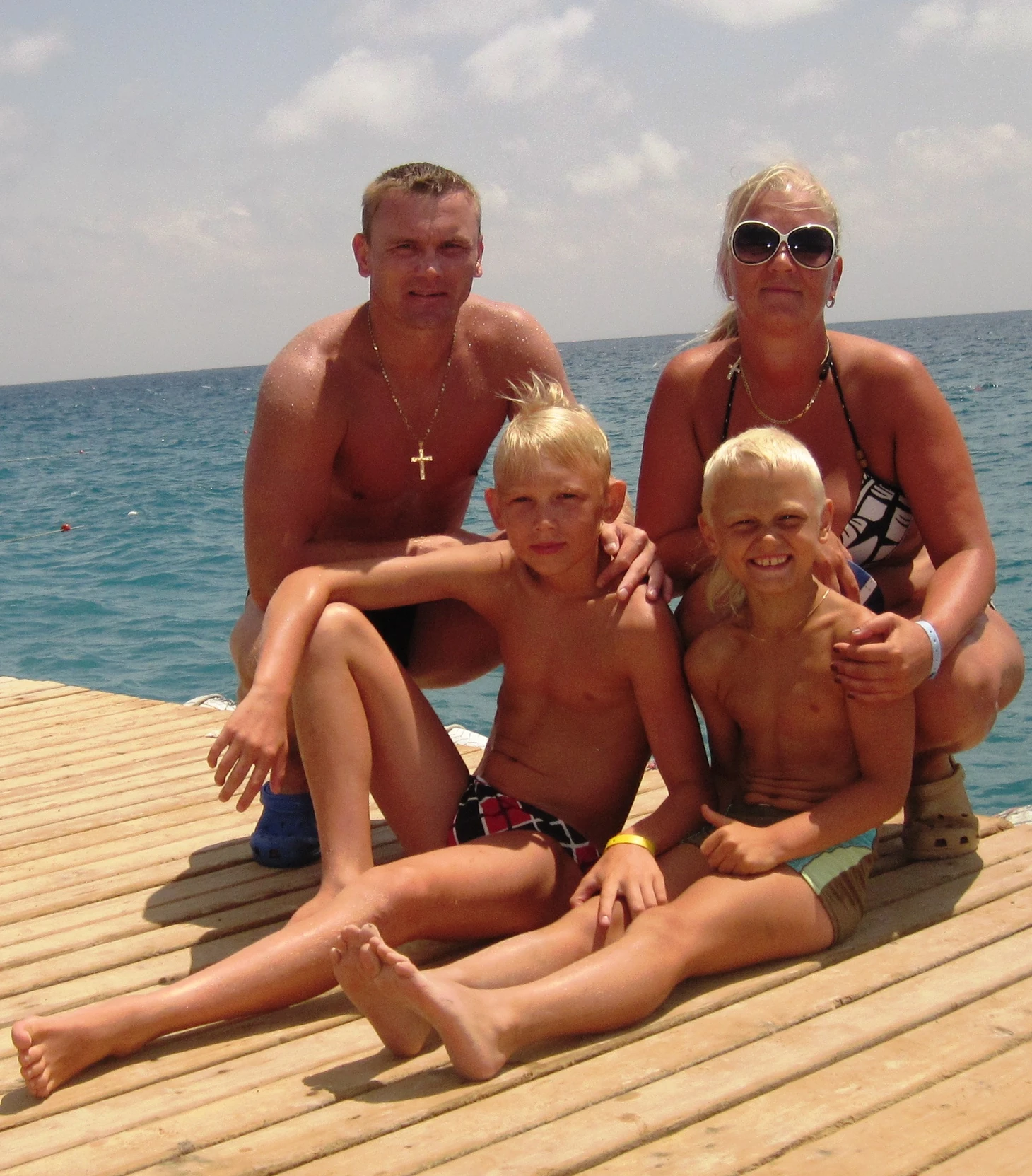 2012 год. Турция. Александр Тюкавин с женой Ириной и сыновьями Даниилом и Константином на отдыхе