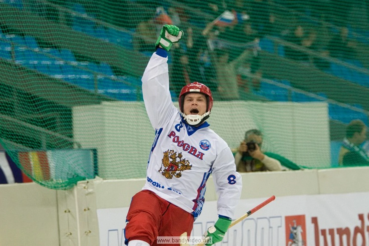 3 февраля 2008. Москва, спорткомплекс «Олимпийский». Александр Тюкавин забивает первый мяч в ворота сборной Швеции на второй минуте финального матча XXVIII чемпионата мира (6:1)