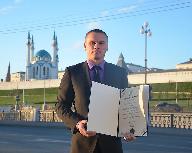 21 июля 2014. Казань. Александр Тюкавин с Международной премией Fair Play