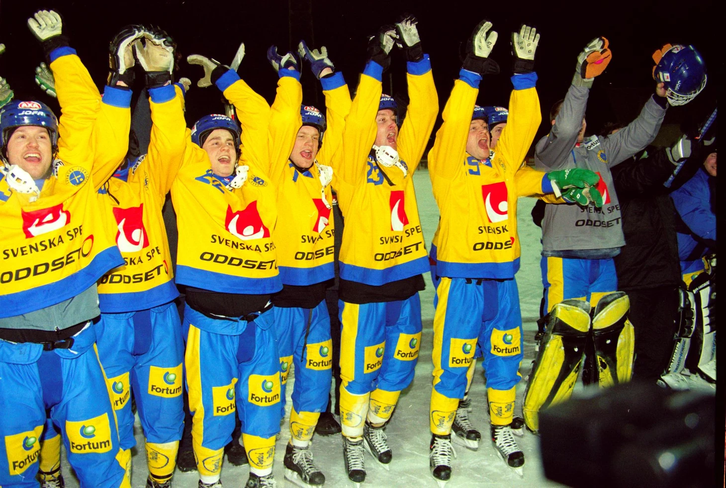 6 февраля 2005. Казань, стадион «Ракета». Игроки сборной Швеции — победители XXV чемпионата мира