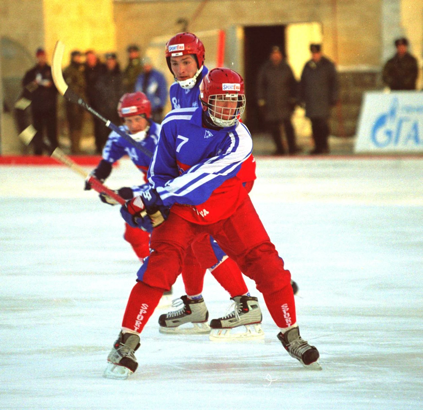 30 января 2005. Казань, стадион «Ракета». Стартовый матч XXV чемпионата мира Россия — США — 19:1. С мячом — Ринат Шамсутов