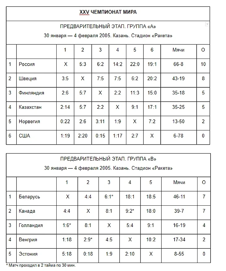 Второй матч с финнами в непривычном статусе. Соперник — действующий чемпион мира, к тому же россияне проиграли финнам три встречи подряд: дважды (матч отборочного тура и полуфинал) — год назад на ЧМ-2004, еще раз — три недели назад на Суперкубке Европы. Но теперь все иначе: уже в первом тайме вышли вперед — два мяча Шамсутова за две минуты сломили волю соперника, которого во второй половине встречи осталось добить — 6:2. Но главный итог — почти трагический: тяжело травмирован лидер команды Свешников, на лед он больше не выйдет. Как позже выяснится (и об этом не раз говорил Янко), эта травма станет для России роковой — в трудный момент в команде не окажется лидера, того, кто бы смог повести за собой.
