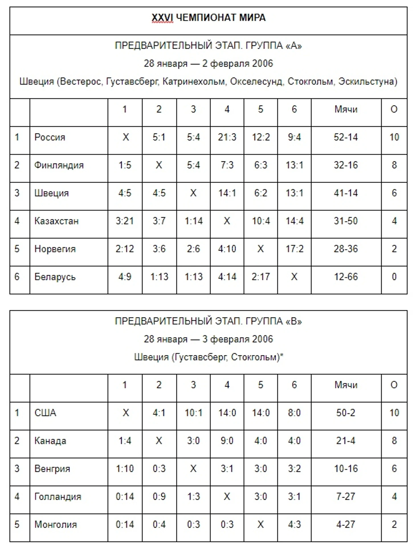 Голы: 1:0 — Тюкавин (3). 1:1 — Ю. Андерссон (8). 2:1 — Обухов (17). 2:2 — Брун (34). 2:3 — М. Карлссон (40). 3:3 — Шамсутов (53). 3:4 — Ю. Андерссон (63). 4:4 — Ломанов (72). 5:4 — Тюкавин (78). 6:4 — Обухов (86). 6:5 — П. Нильссон (88).