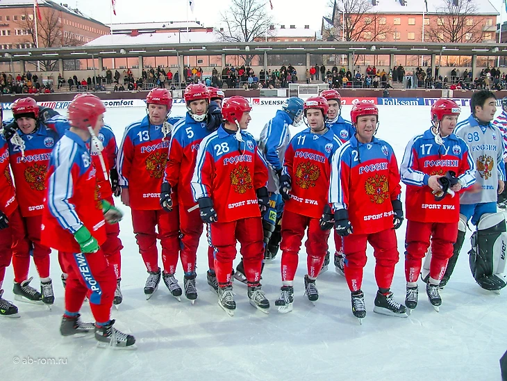 Но затем, не сумев реализовать угловые, пропускаем контратаку, ошибается Хандаев (повторяется ситуация прошлогоднего финала), и на 22-й минуте шведы сравнивают счет. В первом тайме забивает Иванушкин — мощно выстрелив после розыгрыша углового. Начались опасные «качели» (шведы сравняли счет на 53-й минуте, тут же отвечает Ломанов — 3:2), и это на фоне посыпавшихся удалений — норвежские арбитры прощали своим братьям-скандинавам гораздо больше, чем российской команде. Так, после стычки Хельмюрса и Иванушкина удалили только нашего игрока, через несколько секунд на скамейку отправляется Ломанов, а в нападении остается только Обухов! На последних минутах шведы беспрерывно атакуют, а судьи поочередно убирают обоих наших «бортовиков» и последнего защитника. Янко скажет потом: «Мне кажется, что своими действиями во втором тайме судья оскорбил сборную Швеции — эта команда не нуждается в подобной, с позволения сказать, поддержке, она и так могла бы справиться с поставленной задачей».