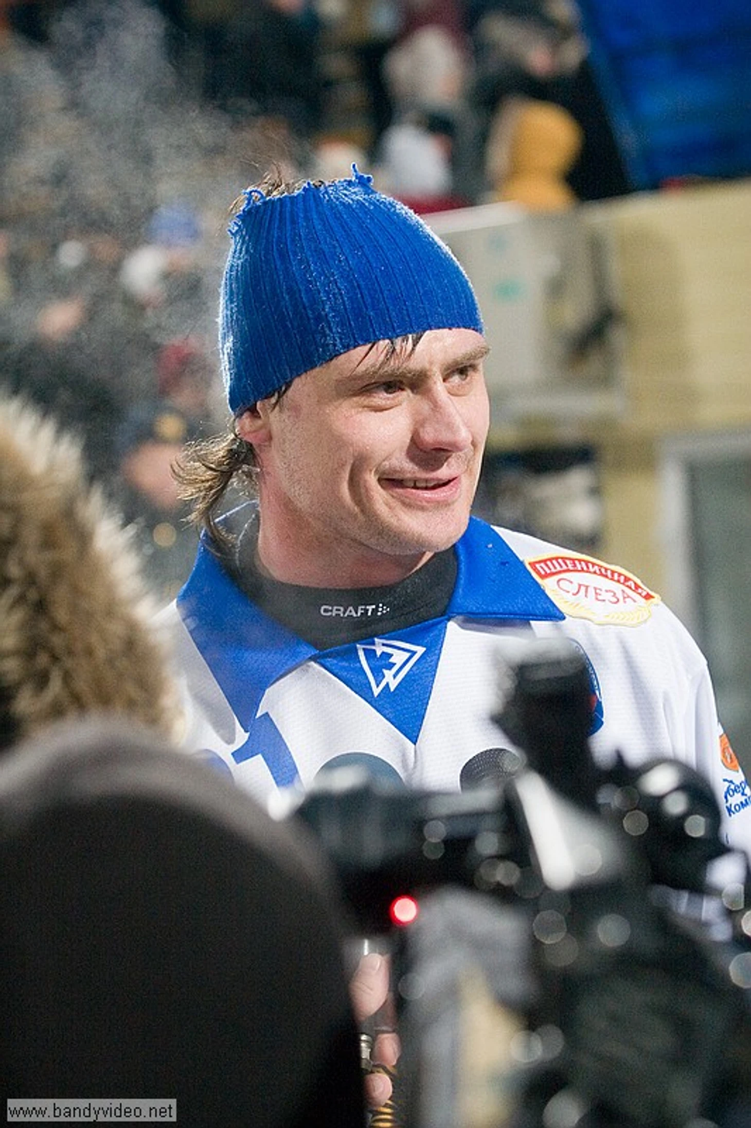 28 января 2007. Кемерово, стадион «Химик». Павел Рязанцев после матча предварительного этапа XXVII чемпионата мира Россия — Норвегия — 18:2, в котором он сделал хет-трик
