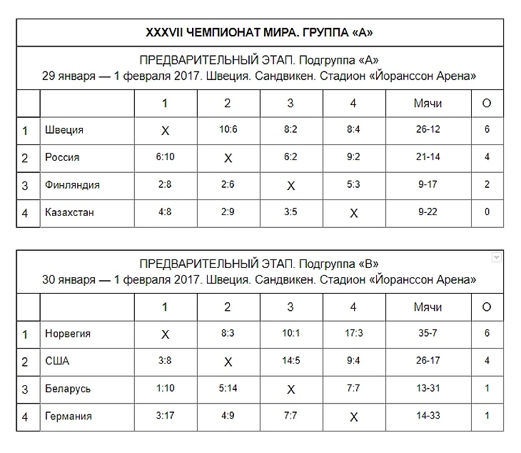 Швеция — Норвегия — 17:2 (8:0)