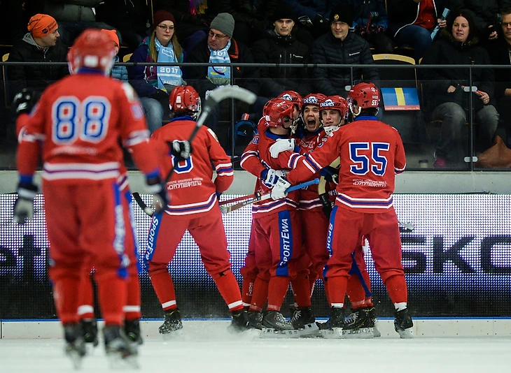 Путь сборной России был, как и ожидалось, весьма тернистым. На предварительном этапе команда Сергея Мяуса одолела Казахстан (9:2) и Финляндию (6:2), но чувствительно уступила шведам — 6:10. Если вспомнить беспомощность в Ульяновске, то получалось, что своих главных соперников россияне на чемпионатах мира не обыгрывали с эпичного финала в Хабаровске… Удивительно, но встреча России и Швеции на «Йоранссон-Арене» не собрала даже двух тысяч зрителей!