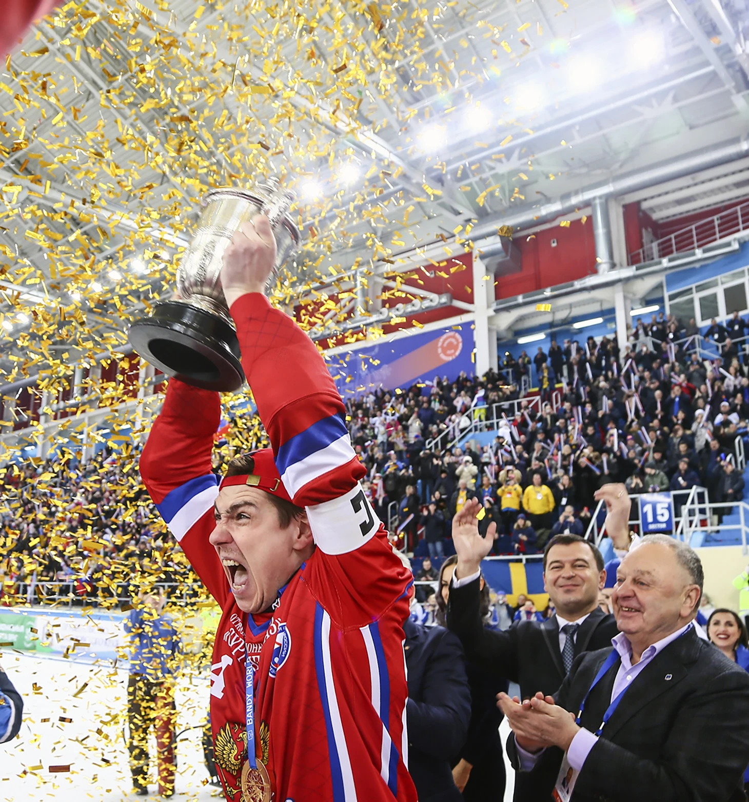 4 февраля 2018. Хабаровск, «Ерофей-Арена». Кубок победителя ХХXVIII чемпионата мира —у капитана сборной России Юрия Викулина