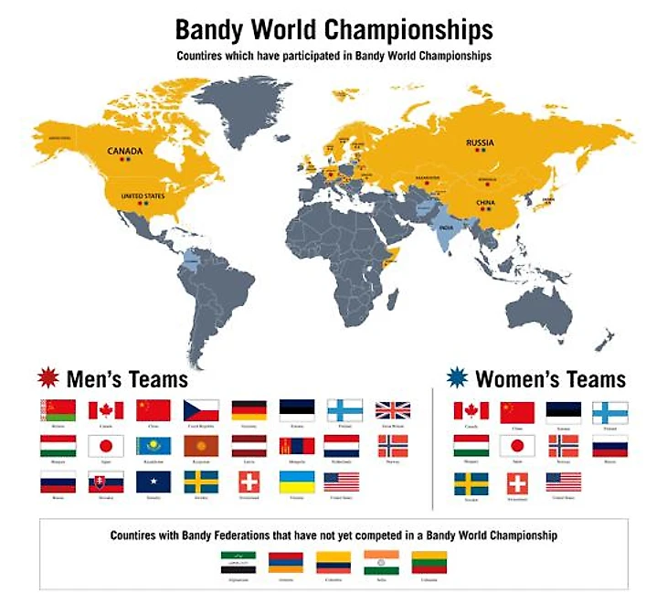 Наконец, в декабре 1980 года 60-летняя изоляция хоккея с мячом подошла к концу: его представили в США. Теперь появилась пятая нация, участвующая в соревнованиях по бенди: через два года США стали принимать участие в чемпионатах мира среди клубных команд, а в 1985-м сборная дебютировала на чемпионате мира. В 1995 году США даже принимали ЧМ в Миннеаполисе. Плотина изоляции сломана, шлюзы открылись. Сначала Канада, Нидерланды и Венгрия появились на международной арене. Затем бывшие советские республики Казахстан, Беларусь и Эстония. Рост ускорился, когда Монголия, Латвия, Япония, Кыргызстан, Сомали, Германия, Китай, Швейцария, Украина, Чехия, Словакия и чемпион Европы 1913 года Великобритания начали соревноваться в мужских чемпионатах мира – общее количество стран, представленных в хоккее с мячом, достигло 23.